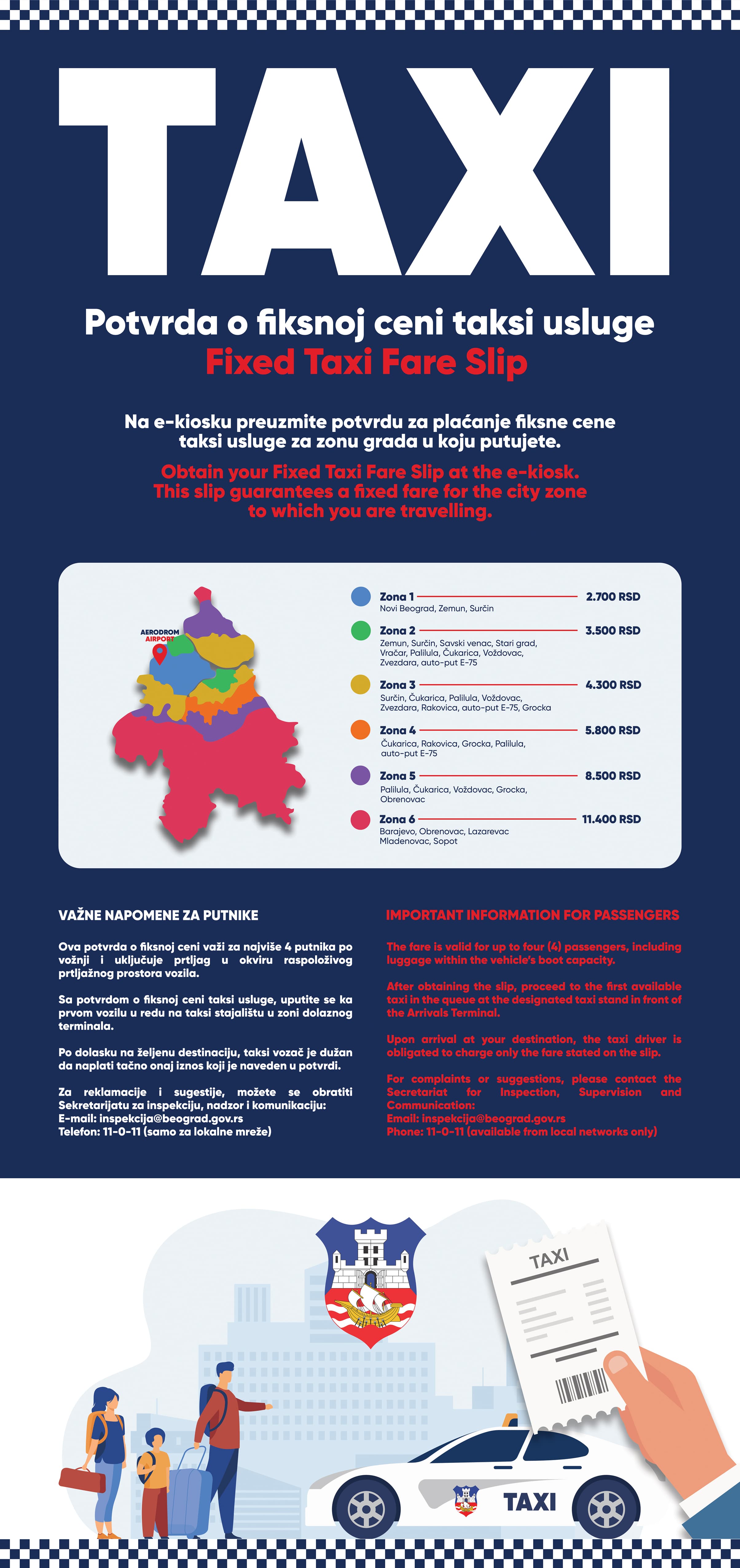 Систем за аутоматизовано издавање потврда о фиксној цена такси превоза на Аеродрому „Никола Тесла“ Београд.